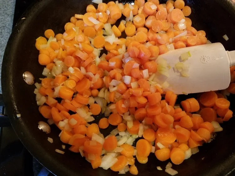 In the morning, strain the broth then add it back to the crockpot. Add a chopped onion or two, a few cups of pre-soaked beans and a handful of chopped carrots. Get creative with what you have on hand. Corn, celery, diced tomatoes… anything goes. Sometimes I sautee my onion, carrots and garlic in a little olive oil before I add it. When I’m in a hurry, I don’t.