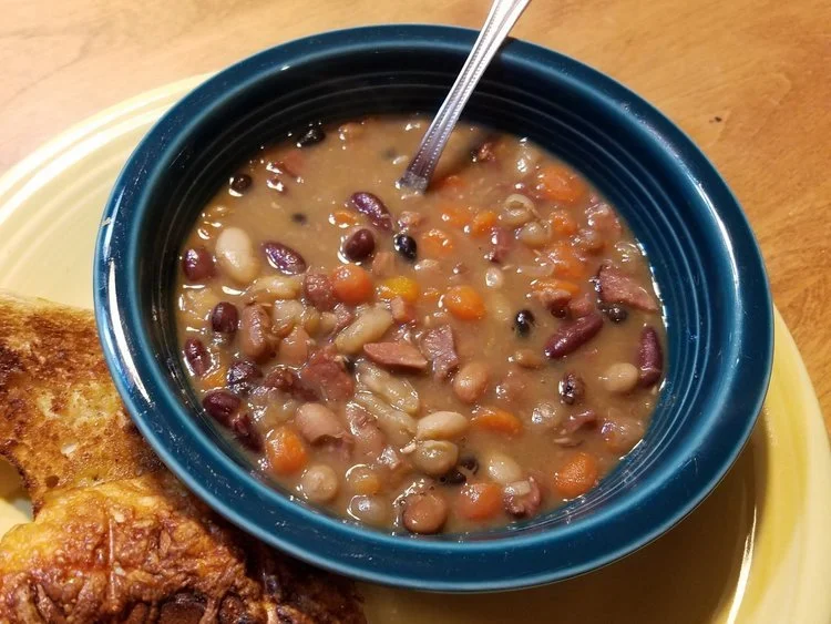 So I pulled out the crockpot and whipped up some homemade ham and bean soup. It’s so easy to throw together and smells so good while it simmers all day. I don’t really use a recipe, it changes each time depending on what I’ve got on hand, but here’s a rough draft in case you want to give it a try…