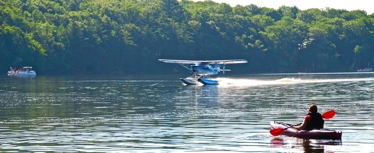 Seeing the seaplane floating on the lake is a treat. When the engine cranks over we head for the deck so we can watch it take off. Then we keep our ears tuned for the sound of the motor waiting for it to circle the lake before it lines up, coming in for a graceful landing.